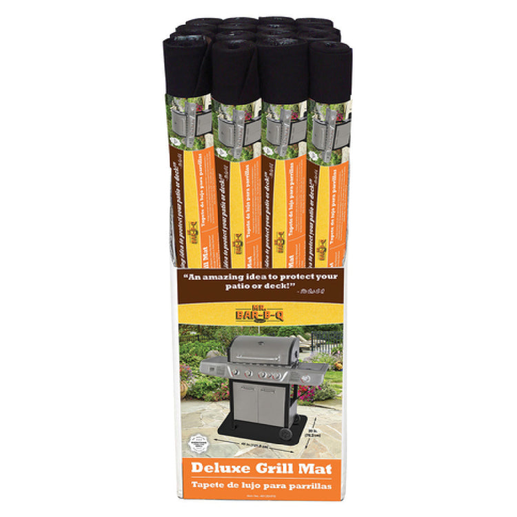 The Chef Master 40125YFD Mr. Bar-B-Q® Grill Mat Large Rolled is a versatile addition to any grilling enthusiast’s toolkit, offering an ideal solution for protecting floors during outdoor cooking sessions. Crafted from a durable combination of PVC and polyester, this grill mat is designed to withstand the rigors of outdoor environments while effectively safeguarding surfaces from spills, grease, and heat. Measuring large and accommodating a variety of grill sizes, this mat ensures comprehensive coverage and protection. The rolled design facilitates easy storage and deployment, making it convenient for both permanent and occasional grill setups. This product excels in providing a clean space for grilling activities, appealing to homeowners who value their outdoor spaces and wish to maintain them in pristine condition. Additionally, the Chef Master 40125YFD Mr. Bar-B-Q® Grill Mat is ideal for commercial use in hospitality venues, ensuring high-maintenance areas remain protected from damage. Its aesthetically pleasing floor display enhances its appeal, making it a practical and visually appealing choice for both residential and commercial markets. The durability and functional design of this grill mat make it a valuable investment for any setting where grilling is a favored activity.