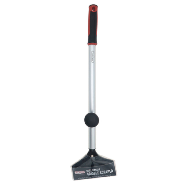 The Chef Master 90220 Chef-Master™ Griddle Scraper is a versatile tool designed for professional chefs and culinary enthusiasts who demand precision and durability in their kitchen equipment. With a substantial overall length of 23 inches, this scraper is engineered to handle the rigorous demands of commercial kitchens and food service establishments. It features a high-quality 5-3/4-inch stainless steel blade, offering excellent resistance to corrosion and wear, ensuring longevity and reliability. The scraper is equipped with a comfort grip handle and a handle knob, which provide ergonomic support and reduce hand fatigue during extended use. The combination of aluminum construction with a stylish black and red finish adds both durability and aesthetic appeal. This griddle scraper excels in various culinary settings, such as restaurants, food trucks, and catering services, where maintaining a pristine cooking surface is crucial. Its robust design and user-friendly features make it an indispensable tool for efficiently cleaning and maintaining griddles, enhancing productivity in fast-paced environments. The Chef Master 90220 Chef-Master™ Griddle Scraper stands out as a must-have for professionals seeking a reliable and efficient cleaning tool that meets high standards of performance and quality.