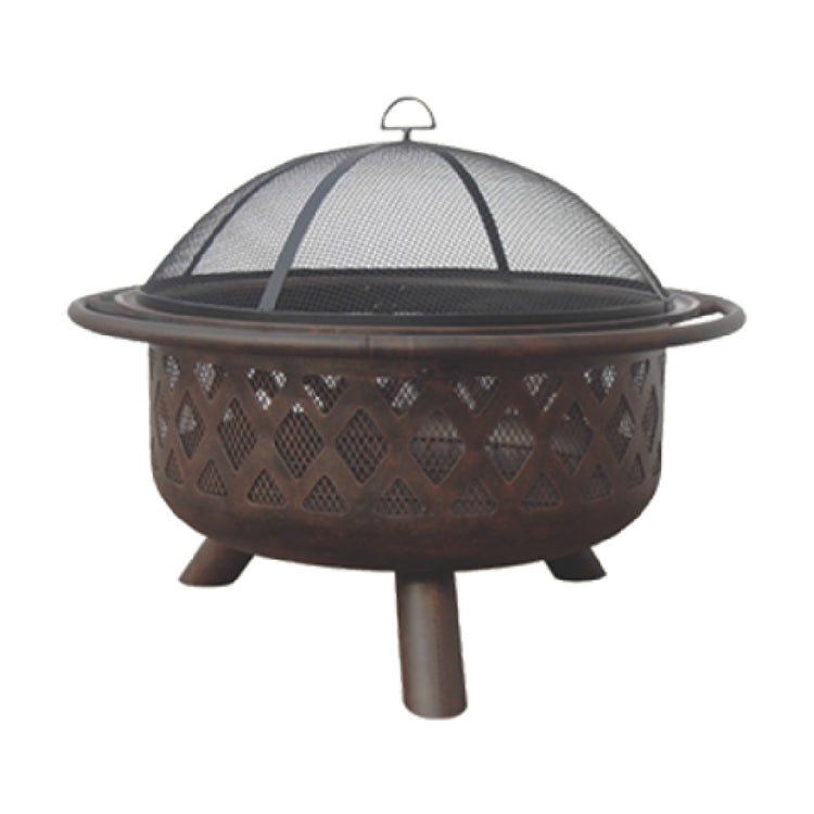 The Chef Master WAD792SP Blue Rhino® UniFlame® Outdoor Wood Firebowl is an impressive 36-inch diameter, 27-1/2-inch high round firebowl, specifically designed for versatile outdoor use. Featuring a lattice design, this firebowl is a striking addition to any outdoor setting. Constructed from durable steel with an oil-rubbed, bronze finish, it is built to withstand the elements while maintaining an elegant appearance. The inclusion of a removable lid not only ensures safety by containing embers but also allows for easy cleaning and maintenance, enhancing its practical appeal. This firebowl is a perfect fit for a variety of market segments, including residential homeowners seeking a stylish outdoor heating option, hospitality businesses aiming to create inviting spaces for guests, and event organizers requiring reliable and attractive fire features for outdoor events. The Blue Rhino® UniFlame® Outdoor Wood Firebowl combines aesthetic appeal with functional design, making it an exceptional choice for those looking to enhance their outdoor environments with warmth and ambiance.
