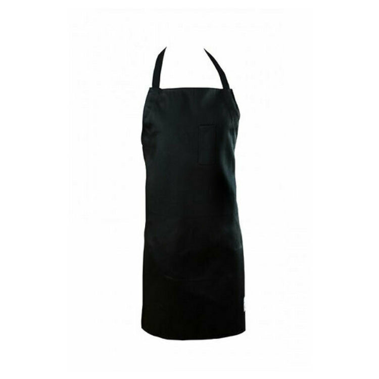 The John Ritzenthaler Company 412BA-BK Chef Revival® Bib Apron 29" X 34" With Adjustable Neck Tie is a versatile garment designed to meet the needs of professional culinary environments. The apron measures 29 inches by 34 inches, providing ample coverage for superior protection against spills and stains. Constructed from a durable blend of poly-cotton, this apron delivers a balance of comfort and resilience, ensuring longevity even in demanding kitchen settings. The apron features an adjustable neck tie, allowing for a customizable fit that accommodates various body types, enhancing comfort during prolonged wear. A convenient pen/thermometer pocket is included, offering practical storage for essential tools, thereby improving efficiency for chefs and kitchen staff. The apron comes in a sleek black color, which not only complements various kitchen uniforms but also aids in maintaining a professional appearance. Each apron is individually packed, ensuring it arrives in pristine condition. This bib apron is an essential component for culinary professionals seeking functionality and style, making it a valuable addition to any food service operation. Its thoughtful design and practical features cater to the diverse needs of chefs, ensuring it stands out in the competitive market of kitchen apparel.