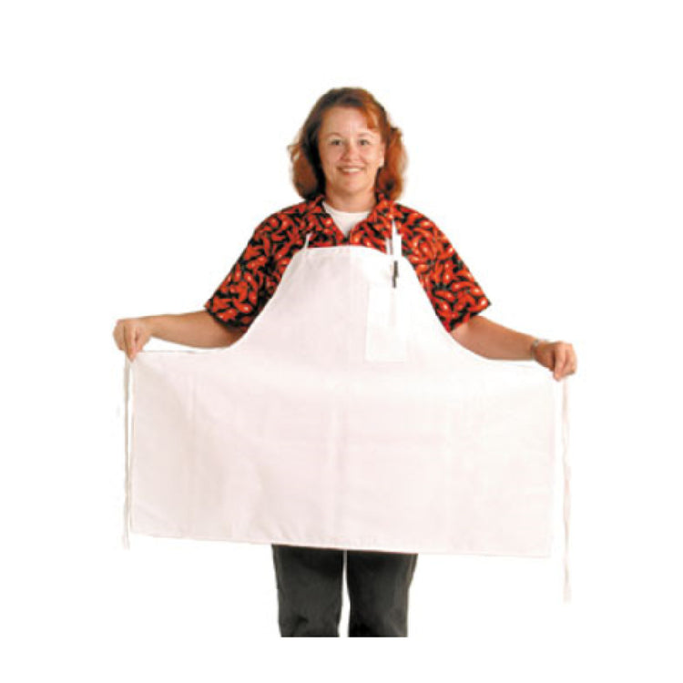 The John Ritzenthaler Company 600BAW-XL Chef RevivalĀ® Extra Wide Bib Apron 38" X 30" Poly/cotton Blend is a versatile and practical choice for professionals in the culinary industry. Crafted with a poly/cotton blend, this apron is designed to provide comfort and durability for chefs, bakers, and kitchen staff working in various food service environments. The apron measures 38 inches in length and 30 inches in width, offering ample coverage to protect clothing from spills and stains, making it an ideal choice for bustling kitchens. A unique feature of this apron is its pencil pocket, conveniently placed to keep writing tools within easy reach for taking quick notes or jotting down recipes. The adjustable neck band ensures a comfortable fit for different body types, enhancing the wearer's ease of movement and comfort during long hours of culinary creativity. Presented in a classic white color, this apron maintains a professional appearance suitable for any kitchen setting. Sold as individual units, it is a practical addition to any culinary wardrobe, combining functionality with a clean, professional aesthetic.