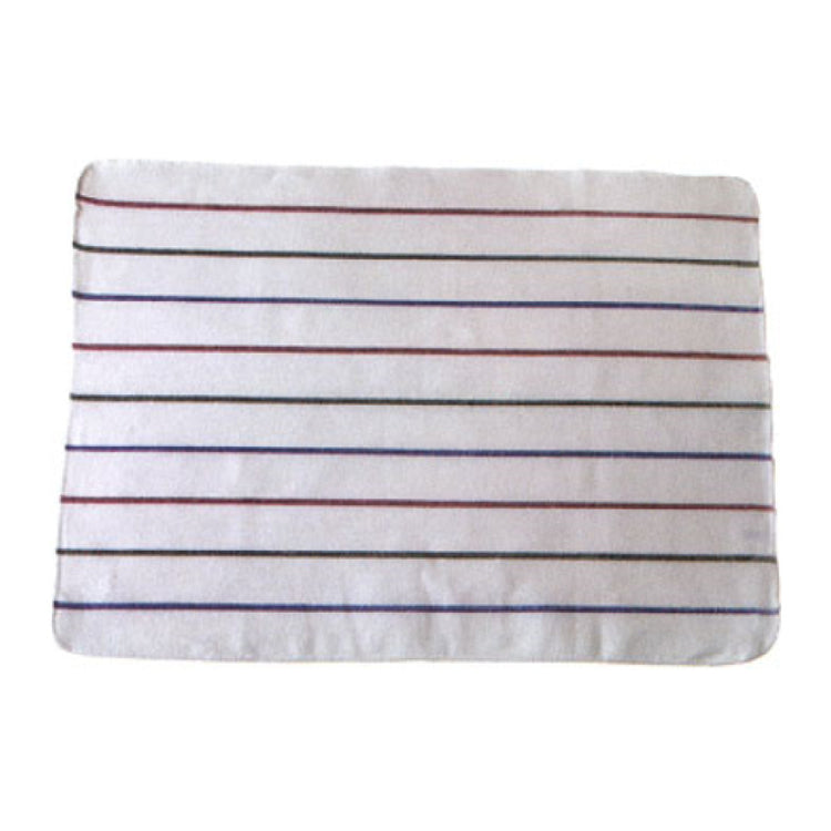 The John Ritzenthaler Company 703HB28 Chef Revival® Chef's Herringbone Towel - 20" X 28" Non-linting is a premium kitchen accessory designed for professional chefs and culinary enthusiasts who value both functionality and quality. Crafted from heavyweight 100% cotton terry, this towel is not only durable but also highly absorbent, making it an essential tool in any busy kitchen environment. The non-linting property ensures that it leaves no residue behind, maintaining cleanliness and preserving the quality of kitchen surfaces and utensils. Featuring multi-colored stripes, this towel adds a touch of style while being practical for diverse kitchen tasks. Measuring 20 inches by 28 inches, it provides ample coverage and utility for various culinary applications. The Chef 24/7® branding underscores its suitability for continuous use in high-demand kitchen settings. Whether used for wiping down surfaces, handling hot cookware, or drying hands, the 703HB28 Chef Revival towel offers unparalleled performance and reliability. Its robust construction and versatile design cater to different segment markets within the culinary industry, from restaurants and catering services to home gourmet chefs seeking professional-grade kitchen linen.