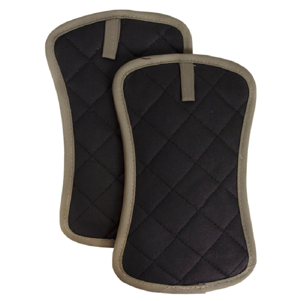 The John Ritzenthaler Company CL2PXSKBDBKBK Ritz® Chef's Line® Skillet Buddy™ Pot Handle Holder is an innovative solution for heat management in the kitchen, designed to provide both functionality and safety. Measuring 10 inches by 6 inches, this pot handle holder is ideally suited for a variety of cookware, offering a comfortable grip while protecting hands from heat exposure. Featuring Pyrotex® construction, it is temperature resistant up to 450°F, ensuring reliable protection during high-heat cooking processes. The Skillet Buddy™ showcases an elegant black and beige color scheme, making it a sophisticated addition to any kitchen setting. Packaged retail-ready, this product is conveniently offered in cases containing 12 pairs, catering to both individual buyers and commercial kitchens looking to supply staff with durable, heat-resistant handle holders. The Ritz® Chef's Line® Skillet Buddy™ is particularly valuable for culinary professionals and home chefs alike, providing a robust solution for safe handling of hot pots and pans, enhancing kitchen efficiency and safety standards while maintaining a stylish appearance.