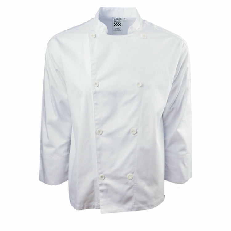 - Double breasted with 8 chef logo buttons