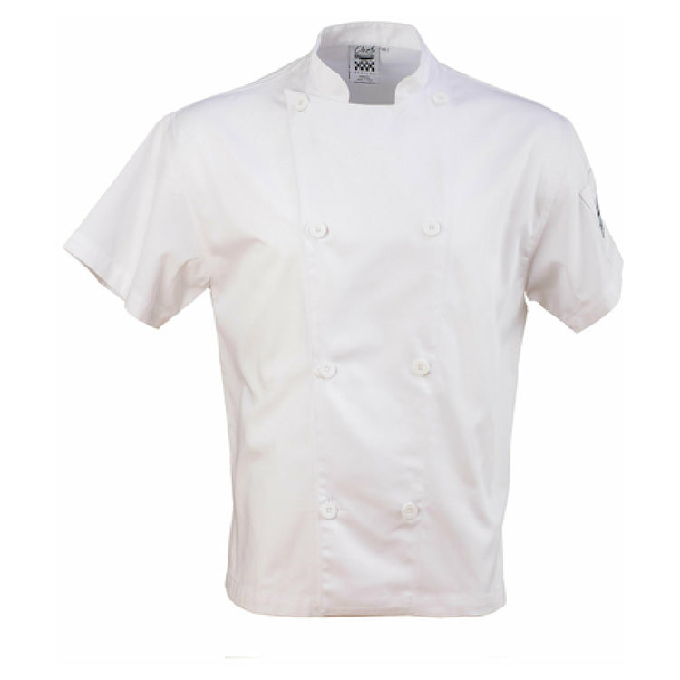 The John Ritzenthaler Company J205-XL Chef Revival® Performance Series Jacket X-large Double Breasted is a meticulously designed garment tailored for culinary professionals seeking both functionality and style. This jacket is crafted with a poly/cotton blend, combining the durability of polyester with the softness of cotton to provide a comfortable wearing experience during long hours in the kitchen. The double-breasted front is accentuated by 8 chef logo buttons, adding a touch of traditional elegance to its design. Catering to the demands of a professional kitchen environment, the jacket features short sleeves for ease of movement, while the inclusion of a mesh back ensures breathability and enhanced comfort. The traditional collar upholds a classic chef aesthetic, and the sleeve pocket offers practical storage for utensils or a thermometer. Available in X-large size, this performance series jacket is ideal for chefs working in high-temperature environments, balancing style with the necessary performance features required in fast-paced culinary settings. The John Ritzenthaler Company J205-XL Chef Revival® Performance Series Jacket is presented in a clean white hue, making it suitable for various culinary sectors, including restaurants, catering services, and educational culinary institutions, ensuring a professional appearance at all times.