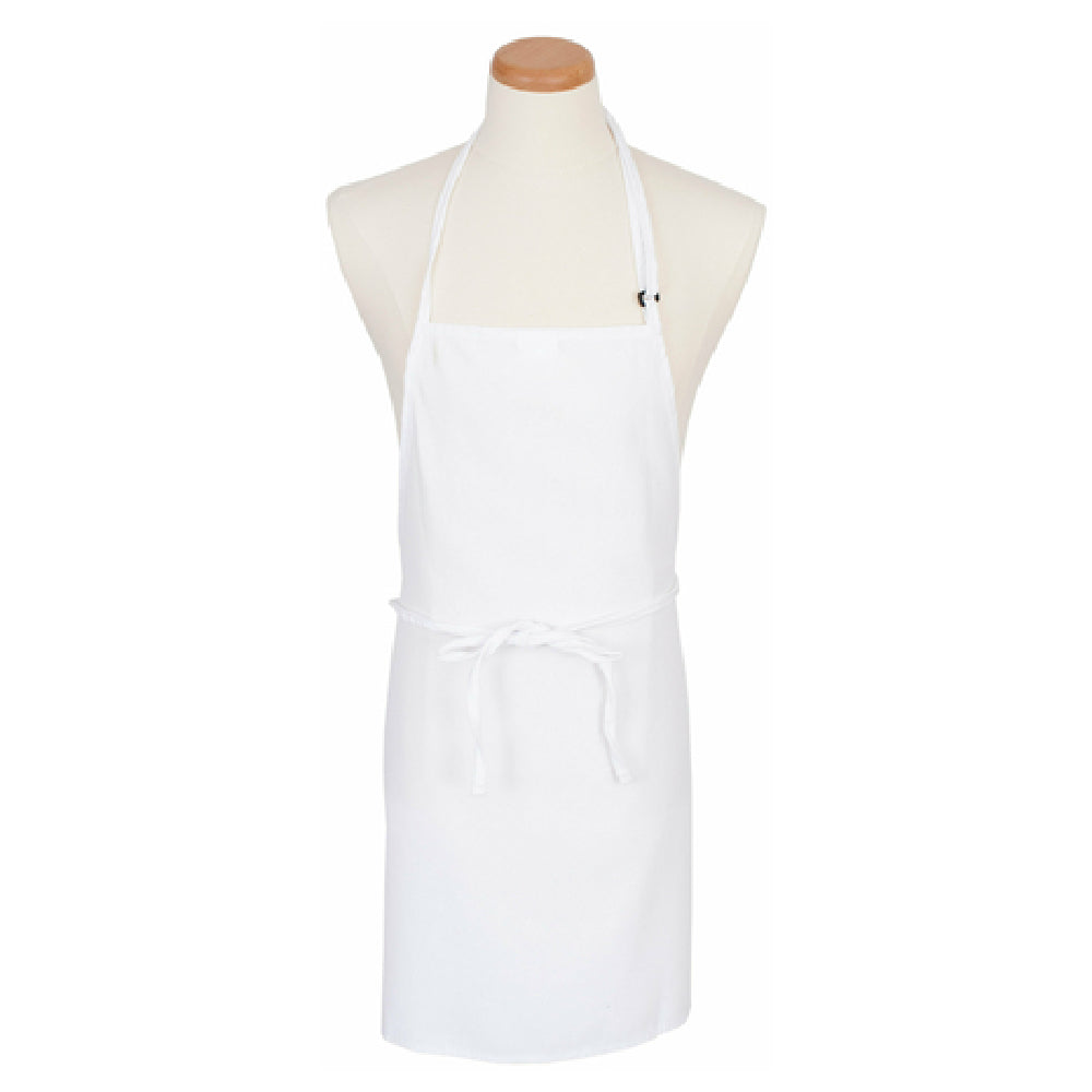 The John Ritzenthaler Company NPBIAWH Ritz® Bib Apron 26" X 31" Long No Pocket elevates kitchen apparel to a new standard of functionality and durability. Measuring 26 inches in width and 31 inches in length, this apron is meticulously crafted with DuraSure® polyester, which is renowned for its fade and water-resistant properties, ensuring longevity and resilience in high-demand environments. The adjustable neck feature offers customizable comfort and fit for diverse user profiles, catering to various segment markets within the culinary industry, from bustling restaurant kitchens to home cooking enthusiasts. Its classic white color provides a clean and professional appearance, while the no-pocket design maintains a sleek silhouette, essential for fast-paced work settings where utility meets style. The apron is packaged 24 per case, making it an economical and practical choice for bulk purchasing by larger establishments. This product embodies a balance of technical efficiency and quality design, making it a dependable choice for those seeking durable and stylish kitchen wear solutions.