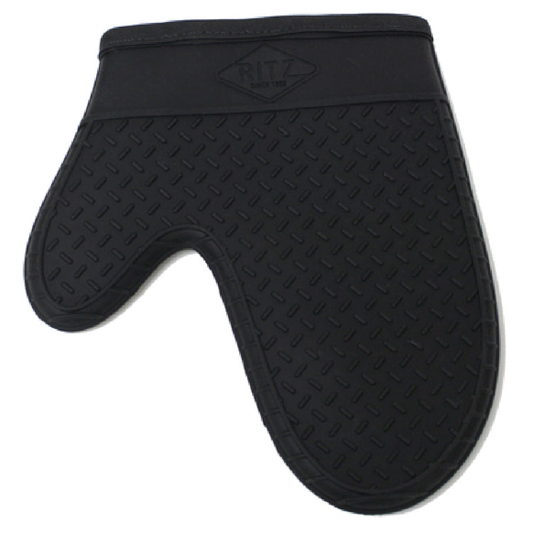 The John Ritzenthaler Company RZS685BK10 Ritz® Oven Mitt 10" is an essential tool designed for professional and home kitchens, providing superior protection and functionality. With a heat resistance capacity of up to 685°F, this oven mitt offers formidable defense against boiling water, steam, oil, and flame, making it an invaluable asset in high-temperature cooking environments. Its unique tread design enhances grip, ensuring secure handling of cookware and preventing accidental slips. The mitt's exterior is crafted from durable silicone, providing both strength and flexibility, while its 100% cotton interior ensures comfort during prolonged use. This product is bleach resistant, and its compatibility with both dishwashers and laundry machines facilitates easy maintenance. Certified as FDA approved and food safe, the RZS685BK10 Ritz® Oven Mitt meets stringent safety standards, making it suitable for diverse culinary settings. Its sleek black design adds a touch of sophistication to kitchen attire. This mitt is particularly valuable for chefs, bakers, and culinary enthusiasts who require reliable heat protection and enhanced grip in their cooking endeavors.