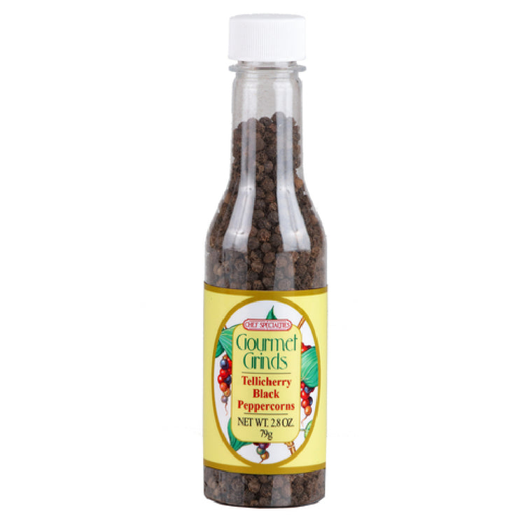 - Rich, robust Tellicherry peppercorns for gourmet flavor