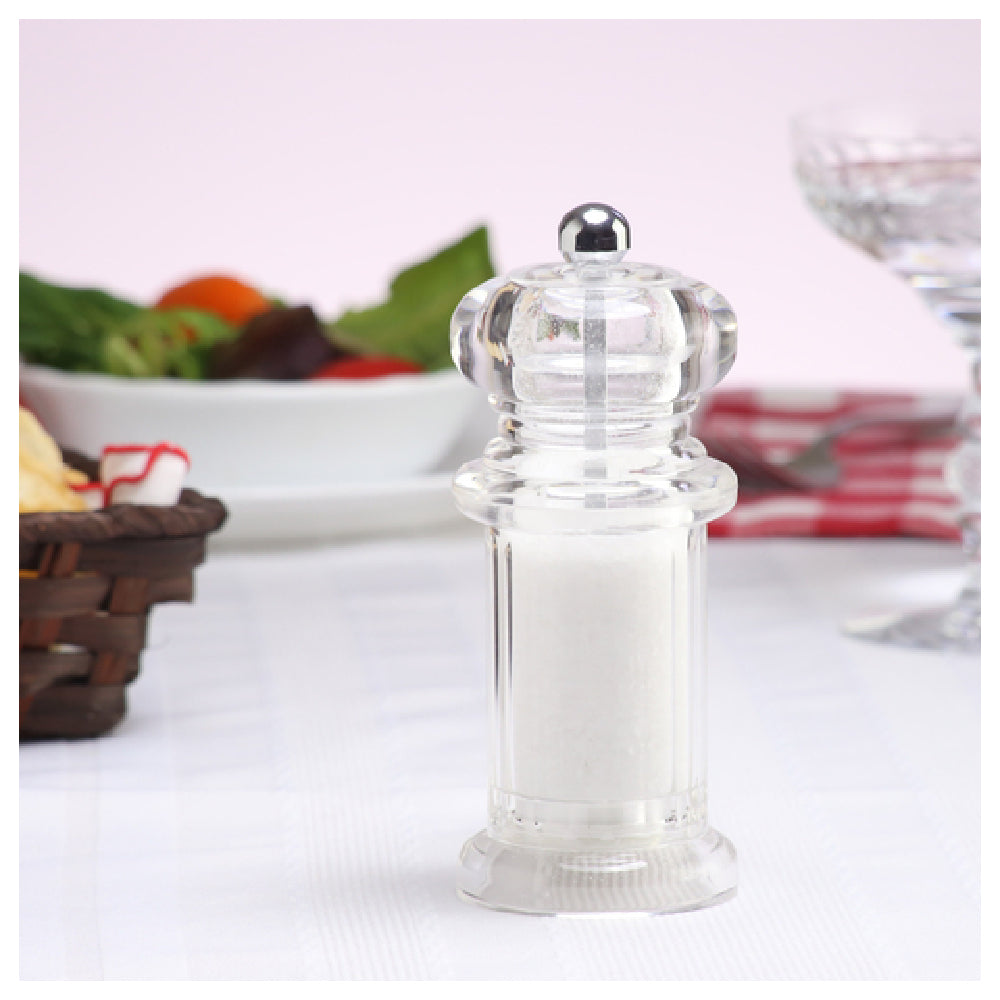 The Chef Specialties 01752 (017520) Chef Home Cookin' Series Citation Salt Mill - 5-1/2" High is an exceptional tool designed for culinary enthusiasts and professional chefs alike. This salt mill stands out with its durable, long-lasting mechanism, ensuring a reliable performance throughout its lifetime. The acrylic finish not only adds a sleek and modern touch to your kitchen but also guarantees durability and ease of cleaning. Proudly filled in the U.S.A., this salt mill reflects a commitment to quality craftsmanship. It comes with a lifetime warranty, offering peace of mind and underscoring its superior construction. At 5-1/2 inches in height, it is compact enough for home kitchens yet robust enough for professional settings. The Chef Specialties 01752 is a versatile addition to any culinary environment, whether you're refining your home cooking skills or enhancing the efficiency of a busy restaurant kitchen. Crafted for precision and convenience, this salt mill caters to diverse market segments within the culinary industry, providing a reliable and stylish solution for all your seasoning needs.