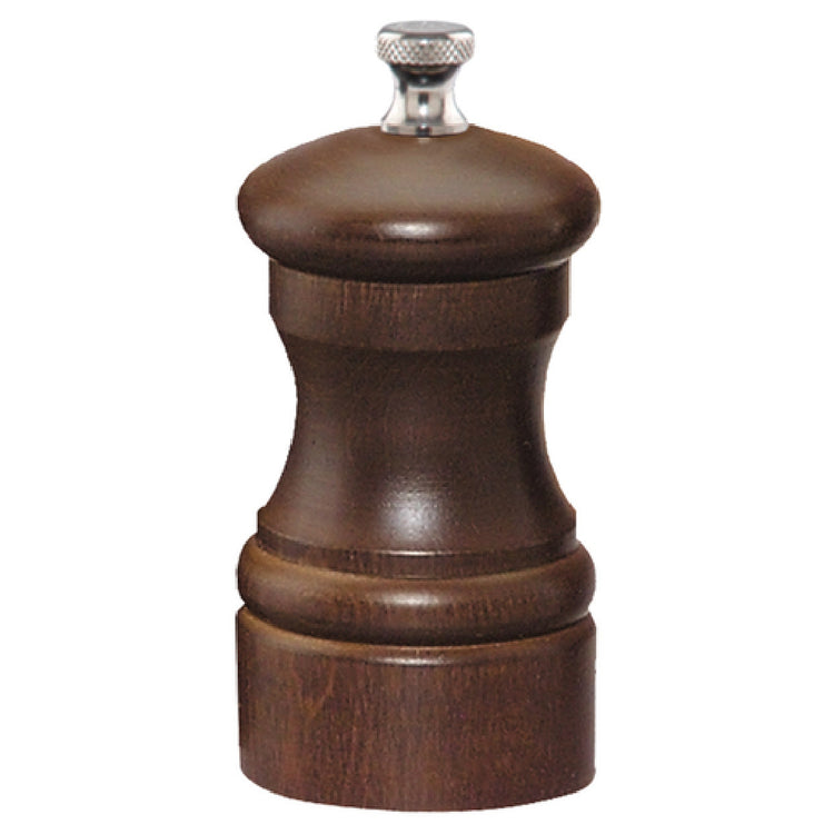 The Chef Specialties 04152 (041525) Chef Professional Series Capstan Salt Mill 4" High stands out with its compact design and exceptional functionality. This salt mill is meticulously crafted in the USA and features a durable grinding mechanism that ensures consistent and precise grinding for culinary enthusiasts and professional chefs alike. Its sturdy construction and high-quality materials signify long-lasting performance, further endorsed by a lifetime warranty that guarantees customer satisfaction and trust. The salt mill's elegant walnut finish adds a classic touch to any kitchen or dining setting, making it not only a practical tool but also an aesthetic addition. Measuring 4 inches in height, it is perfectly sized for easy handling and efficient use, fitting seamlessly into various kitchen environments, from small home kitchens to bustling restaurant settings. The Chef Specialties Capstan Salt Mill's blend of durability, functionality, and elegance makes it a versatile choice for different market segments, offering unique value for culinary professionals who demand precision and reliability in their kitchen tools. This product exemplifies the dedication to quality and craftsmanship that Chef Specialties is renowned for, providing an essential tool for enhancing the flavors and presentation of culinary creations.