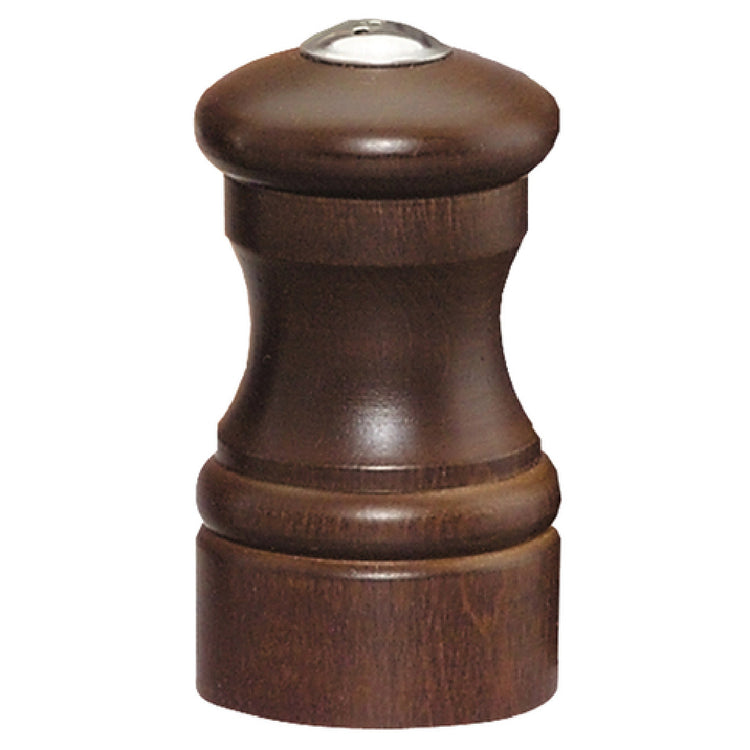 Chef Specialties 04155 (041556) Chef Professional Capstan Salt/Pepper Shaker 4" High is a meticulously crafted, versatile accessory for both amateur and professional culinary enthusiasts. Standing at 4 inches high, this shaker is designed with a functional rubber plug, ensuring easy refilling and secure closure to maintain the freshness of your spices. The stainless steel shaker cap adds a touch of modern elegance while ensuring durability and resistance to corrosion, making it a long-lasting addition to any kitchen. Proudly made in the USA, this shaker underscores a commitment to quality and craftsmanship, reflecting decades of expertise in kitchenware manufacturing. The rich walnut finish provides a classic and sophisticated look, making it suitable for both contemporary and traditional kitchen settings. The inclusion of a lifetime warranty demonstrates the manufacturer’s confidence in the product’s durability and performance, offering customers peace of mind and a reliable kitchen tool. Ideal for a diverse range of market segments, from home kitchens to high-end restaurants, the Chef Specialties 04155 caters to those who value durability, aesthetic appeal, and superior functionality in their kitchen tools. This shaker embodies a perfect blend of practicality and elegance, making it an essential component in any dining or cooking environment.
