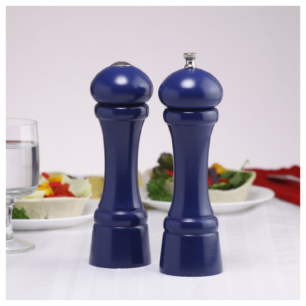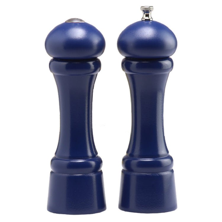 The Chef Specialties 08700 (087004) Autumn Hues Professional Pepper Mill & Salt Shaker Set stands out with its elegant design and durable construction, tailored for both home cooks and professional chefs. Measuring 8 inches in height, this set is crafted from high-quality wood, providing a comfortable grip and a classic aesthetic. The pepper mill is equipped with a tempered stainless steel gear, ensuring long-lasting functionality and precision grinding of peppercorns, which is essential for enhancing the flavor profile of any dish. Proudly made in the USA, this set embodies superior craftsmanship and reliability, further reinforced by a lifetime warranty, offering peace of mind to users who value durability. The cobalt blue finish adds a touch of sophistication and color, making it a visually appealing addition to any kitchen or dining table. This set caters to a wide range of markets, from the culinary enthusiast seeking reliable kitchen tools to the professional chef requiring durable and efficient seasoning solutions. Whether used in a bustling restaurant environment or a cozy home kitchen, the Chef Specialties 08700 set promises both performance and style, making it a versatile choice for those who value quality and design in their kitchen accessories.