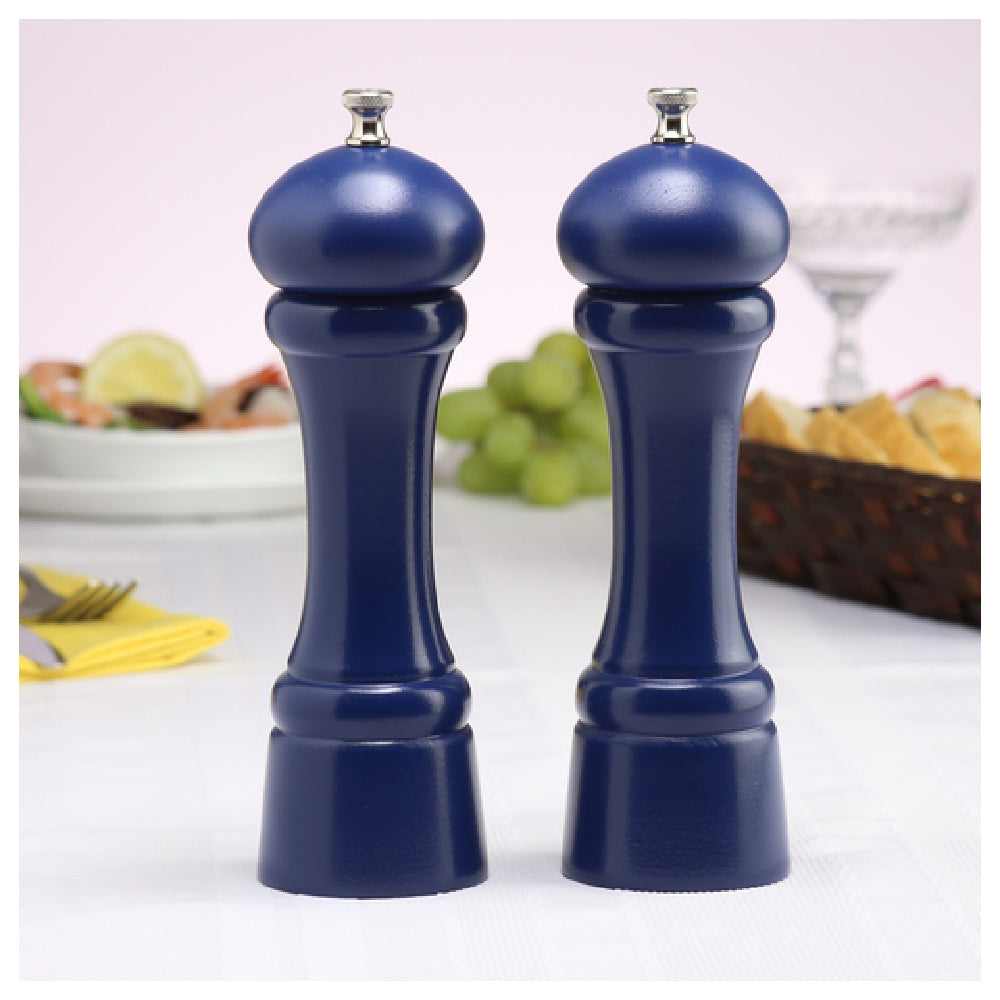 The Chef Specialties 08702 (087028) Autumn Hues Professional Pepper Mill & Salt Mill Set is an expertly crafted 8-inch high duo that brings both functionality and aesthetic appeal to your kitchen. Constructed from high-quality wood, this set embodies a perfect blend of durability and style, highlighted by its striking cobalt blue finish. The pepper mill incorporates a tempered stainless steel gear, ensuring a consistent and reliable grind for your peppercorns, while the salt mill features a ceramic grinding mechanism, specifically designed to resist corrosion and provide long-lasting performance. Made in the USA, this set exemplifies craftsmanship and quality, offering a lifetime warranty that assures customers of its enduring value. This product is ideal for culinary professionals and home chefs alike, catering to those who appreciate precision and elegance in their culinary tools. Whether enhancing the dining experience in upscale restaurants or enriching the home cooking journey, the Chef Specialties 08702 (087028) Autumn Hues Professional Pepper Mill & Salt Mill Set stands out as a superior choice within the market. Its combination of stylish design and robust engineering makes it a standout addition to any kitchen environment, appealing to a wide range of culinary enthusiasts.