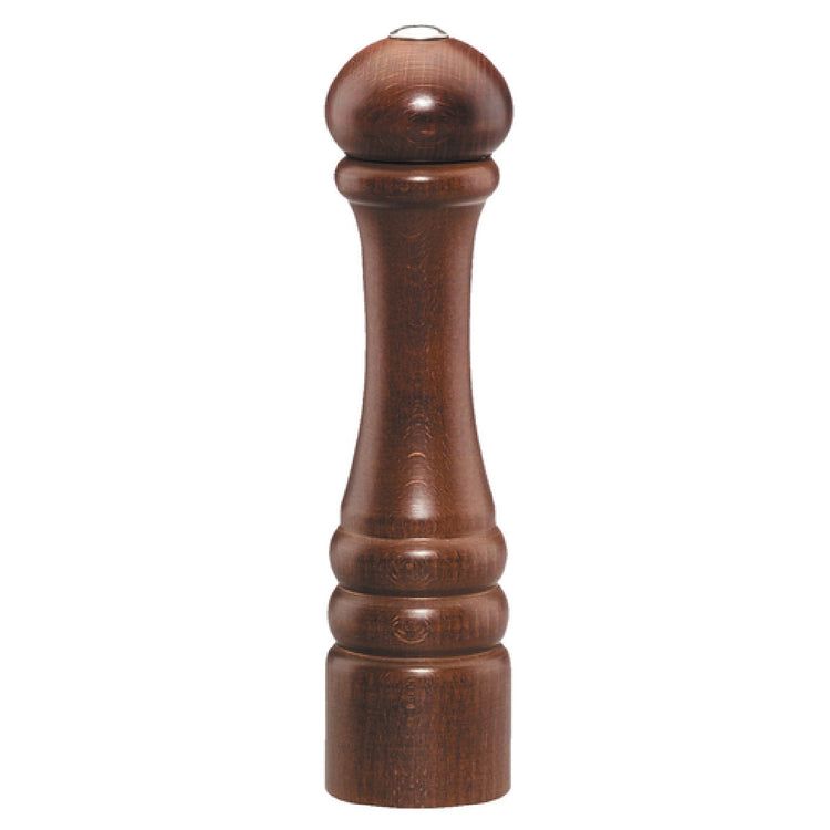 The Chef Specialties 10155 (101557) Chef Professional Imperial Salt/Pepper Shaker 10" High is a meticulously crafted kitchen accessory, designed to enhance culinary experiences with its superior functionality and elegant aesthetic. Standing at a notable 10 inches high, this shaker boasts a robust walnut finish, lending it a classic and sophisticated appeal that complements any kitchen or dining setting. The shaker is equipped with a stainless steel shaker cap, ensuring durability and a seamless distribution of salt or pepper. A practical rubber plug ensures ease of refilling, maintaining the shaker’s sleek appearance while offering convenience for everyday use. Proudly made in the USA, this product is backed by a lifetime warranty, reflecting its exceptional quality and the manufacturer’s commitment to long-term customer satisfaction. This shaker represents a perfect blend of traditional craftsmanship and modern functionality, making it an ideal choice for professional chefs and home cooking enthusiasts alike. Its design caters to various market segments within the culinary industry, from upscale restaurants seeking refined table accessories to households desiring efficient and stylish kitchenware. The Chef Specialties 10155 (101557) is a testament to durability and timeless design, offering a reliable and aesthetically pleasing solution for seasoning needs.