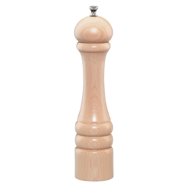 The Chef Specialties 10252 - 102523 Chef Professional Series Imperial Salt Mill stands at an impressive 10 inches high, making it a substantial addition to any kitchen setting. This salt mill features a ceramic grinding mechanism, known for its durability and ability to maintain sharpness over time, ensuring a consistent grind for enhanced culinary precision. Proudly made in the USA, it exemplifies quality craftsmanship and supports domestic manufacturing. The salt mill comes with a lifetime warranty, underscoring its long-term reliability and the manufacturer's confidence in its construction. Its natural finish provides a classic and versatile aesthetic, suitable for various kitchen decors, from professional culinary environments to home kitchens for enthusiastic home cooks. This product is ideal for chefs seeking a dependable and stylish tool, enhancing both functionality and kitchen aesthetics. The Chef Professional Series Imperial Salt Mill serves diverse market segments within the culinary industry, offering a blend of robust performance and timeless design. Its combination of technical precision and visual appeal highlights its unique value proposition, catering to both professional chefs and culinary enthusiasts who demand high standards in their kitchen tools.