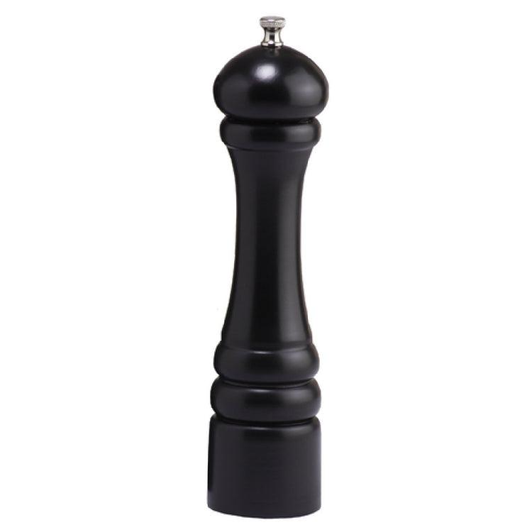 The Chef Specialties 10552 (105524) Chef Professional Series Imperial Salt Mill 10" High stands out with its impressive design and functionality, tailored for culinary professionals and enthusiasts alike. This elegant salt mill features a sleek ebony finish that complements any kitchen decor, while its 10-inch height provides ample capacity for frequent use. At the core of its performance is a ceramic grinding mechanism, renowned for its durability and ability to produce a consistent grind, essential for bringing out the nuanced flavors in gourmet dishes. Crafted in the USA, this salt mill reflects superior craftsmanship and quality standards, ensuring long-lasting performance and reliability in demanding kitchen environments. Furthermore, the product is backed by a lifetime warranty, testifying to its enduring quality and the manufacturer's commitment to customer satisfaction. Whether used in a bustling restaurant kitchen or a home filled with culinary creativity, the Chef Specialties 10552 Imperial Salt Mill is a valuable addition, offering a blend of practicality and elegance. Its robust features cater to the exacting standards of chefs and food experts, making it a versatile tool for enhancing the art of seasoning in various culinary settings.