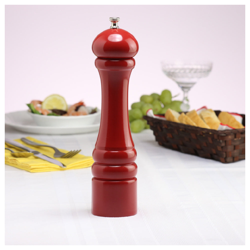 Chef Specialties 10652-106521 Autumn Hues Professional Salt Mill stands at 10 inches high and is a perfect blend of functionality and aesthetics for both home and professional kitchens. Its standout feature is the ceramic grinding mechanism, which is renowned for its durability and ability to resist corrosion, making it ideal for grinding salt efficiently over a lifetime of use. The salt mill is presented in a striking candy apple red color that adds a touch of vibrancy and elegance to any culinary setting, whether it be a bustling restaurant kitchen or a beautifully set dinner table at home. Made in the USA, this product underscores a commitment to high-quality craftsmanship and supports domestic manufacturing. Additionally, it comes with a lifetime warranty, ensuring that customers can trust in the longevity and performance of this salt mill. The Chef Specialties 10652-106521 is not merely a kitchen tool but a sophisticated accessory that caters to the needs of gourmet chefs and home cooks alike, offering a perfect balance of innovation and timeless design.