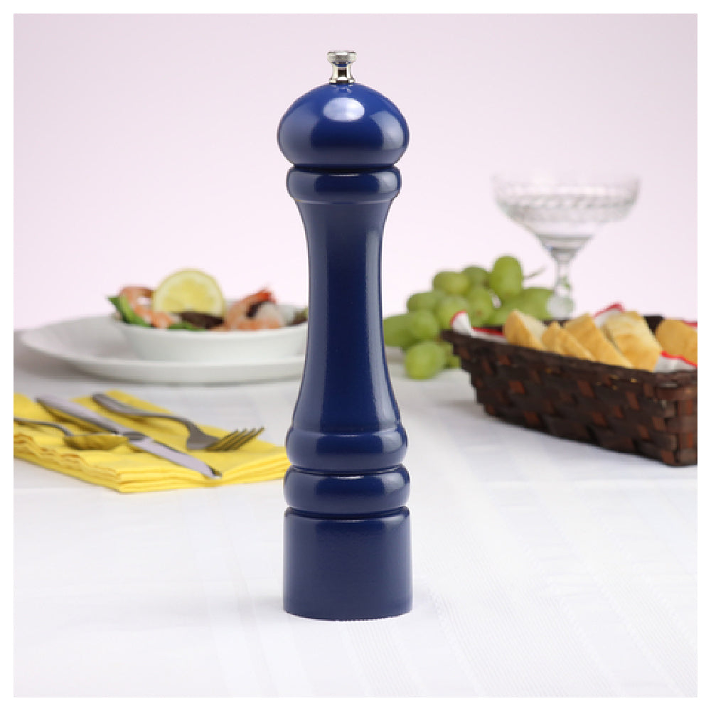 The Chef Specialties 10751 (107511) Autumn Hues Professional Pepper Mill - 10" High is a quintessential tool for culinary enthusiasts and professional chefs alike. Standing at an impressive 10 inches, this pepper mill combines aesthetic appeal with functionality. Its cobalt blue finish adds a touch of elegance, making it a standout piece in any kitchen setting. Engineered with a tempered stainless steel gear, this pepper mill promises durability and precision in grinding, ensuring that your spices are consistently ground to perfection. Proudly made in the USA, this product underscores a commitment to quality craftsmanship. A lifetime warranty accompanies this pepper mill, providing peace of mind and assurance of its long-term performance. Designed for various market segments, from home kitchens to high-end restaurants, its robust construction and reliable performance make it an indispensable tool. Whether you are a professional chef or a home cook, the Chef Specialties 10751 pepper mill offers a unique blend of sophisticated design and superior functionality, making it a valuable addition to your culinary arsenal.