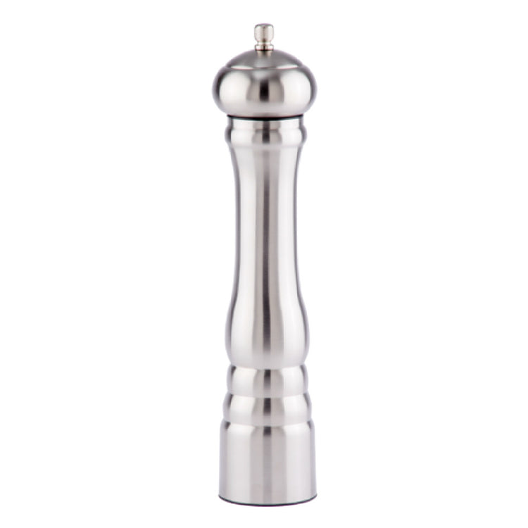 The Chef Specialties 12401 (124013) Chef Professional Series Prentiss Pepper Mill stands as a symbol of precision and quality in spice grinding, meticulously crafted for culinary professionals and cooking enthusiasts alike. This pepper mill, reaching a notable height of 12 inches, is designed to meet the demands of both high-volume restaurant kitchens and home chefs seeking superior performance. Central to its design is an adjustable stainless steel grinding mechanism, which allows users to customize the coarseness of their pepper with ease, ensuring optimal flavor enhancement for various culinary creations. The solid stainless steel housing not only provides durability and long-lasting performance but also adds a sleek, modern aesthetic to any kitchen setting. This robust construction ensures that the pepper mill withstands the rigors of continuous use, making it an indispensable tool for chefs who prioritize reliability and efficiency. With its combination of advanced grinding technology and elegant design, the Chef Specialties 12401 (124013) Chef Professional Series Prentiss Pepper Mill is a versatile choice for a wide range of culinary markets, delivering consistent results with every use and enhancing the overall cooking experience.