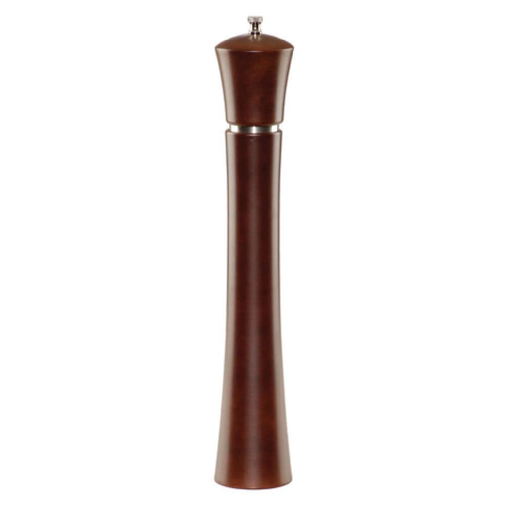 The Chef Specialties 17880 (178801) Chef Professional Series Pueblo Cafe Pepper Mill stands at 17 inches high, presenting an elegant and functional addition to any kitchen setting. Crafted from wood and featuring a sophisticated mocha finish, this pepper mill combines aesthetics with durability. At its core is a stainless steel grinding mechanism, ensuring a consistent and reliable performance that is backed by a lifetime warranty, underscoring the manufacturer's confidence in their product. Proudly made in the USA, the Chef Professional Series is designed to meet the demands of professional chefs and culinary enthusiasts alike, providing a high-quality tool that enhances the cooking experience. This pepper mill caters to a diverse range of users within the food industry, from high-end restaurants that require reliable and stylish table accessories to home cooks looking for long-lasting kitchenware. Its substantial height allows for easy handling and the efficient grinding of larger quantities, making it a versatile choice for various culinary applications. The combination of premium materials and meticulous design makes the Chef Specialties 17880 a standout product in its category, offering both form and function to professionals and home users who value quality craftsmanship in their culinary tools.