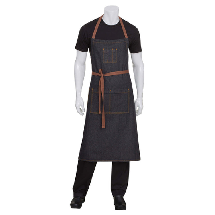 Chef Works AB036-BLK-0 Memphis Chef's Bib Apron 40"L X 35"W Contrast Topstitching