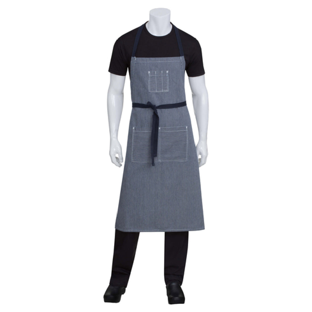 Chef Works AB038-IBL-0 Portland Chef's Bib Apron 39-1/2"L X 35"W Adjustable Contrast Tape Ties