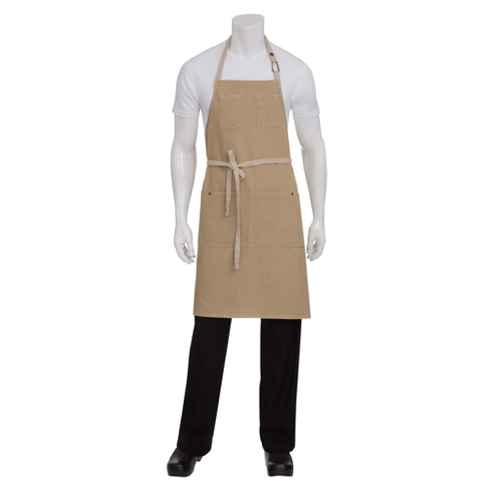Chef Works ABCD056-NAT-0 Austin Bib Apron 34"L X 30"W Reverse Fabric Ties