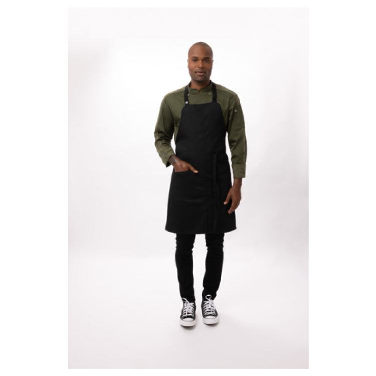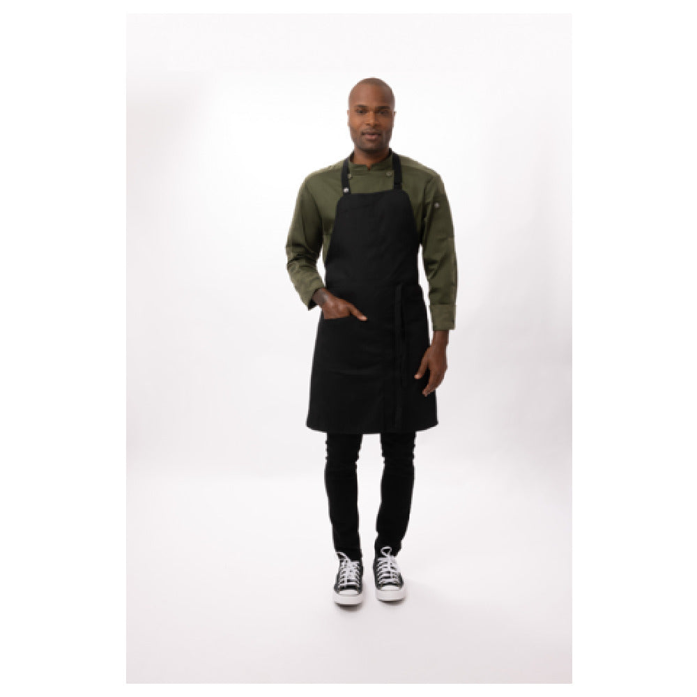 Chef Works ABN05-BLK-0 Brio Bib Apron 34"L X 33"W Adjustable Neck Straps