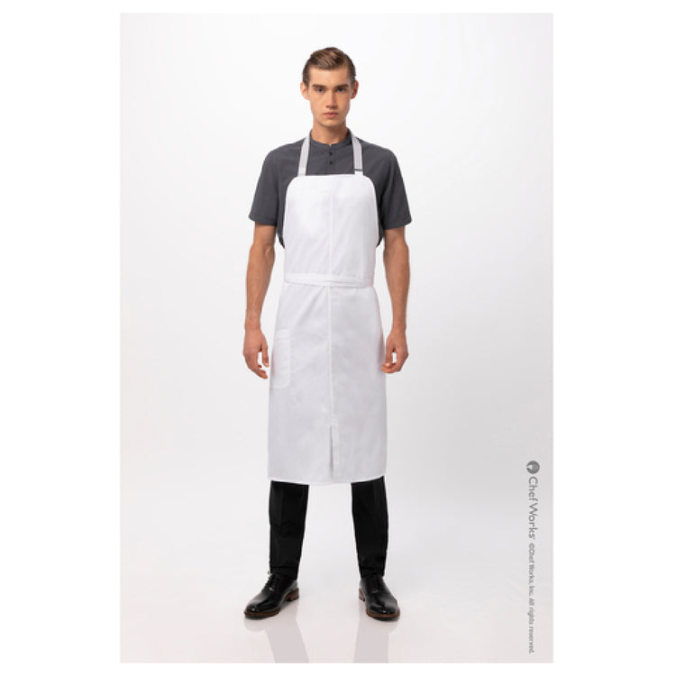 Chef Works ACN01-WHT-0 Brio Chef's Bib Apron 40"L X 43"W Adjustable Elastic Neck Strap