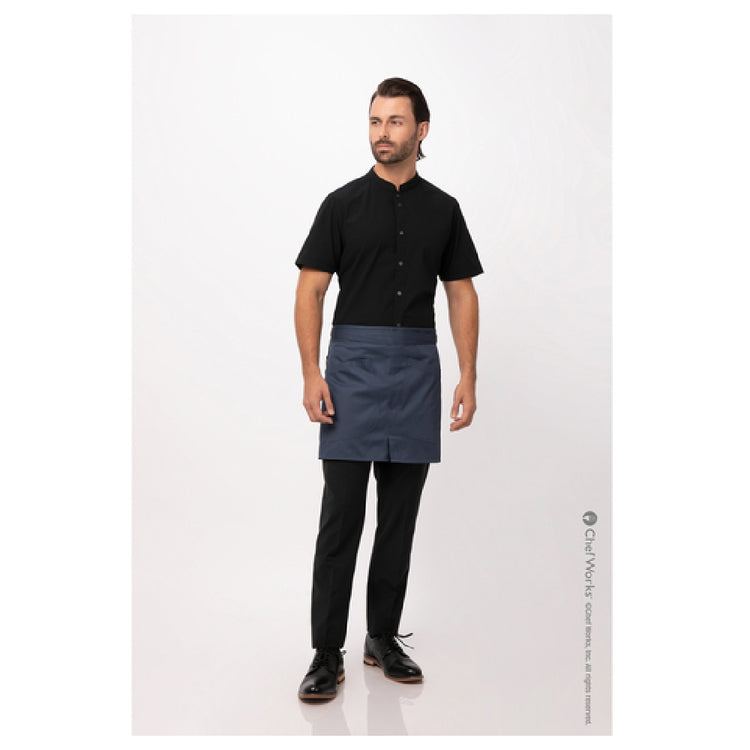 Chef Works AHN05-BLU-0 Largo Half Bistro Apron 16"L X 38"W Hip Patch Pockets