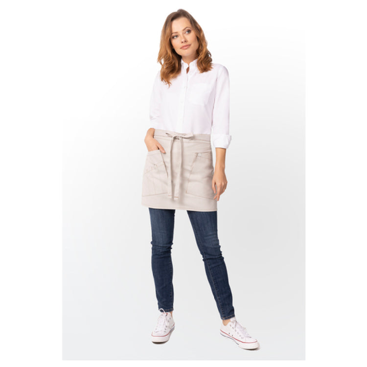Chef Works AHN06-NAT-0 Medford Half Bistro Apron 16"L X 38"W Hip Pockets With Pencil Divide On The Right Pocket