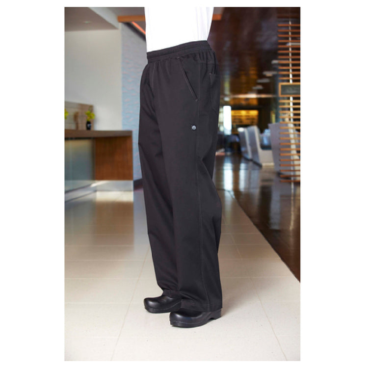 Chef Works BBLW-BLK-L Basic Baggy Pants Double-needle Topstitching Detail Built-in Flat Drawstring