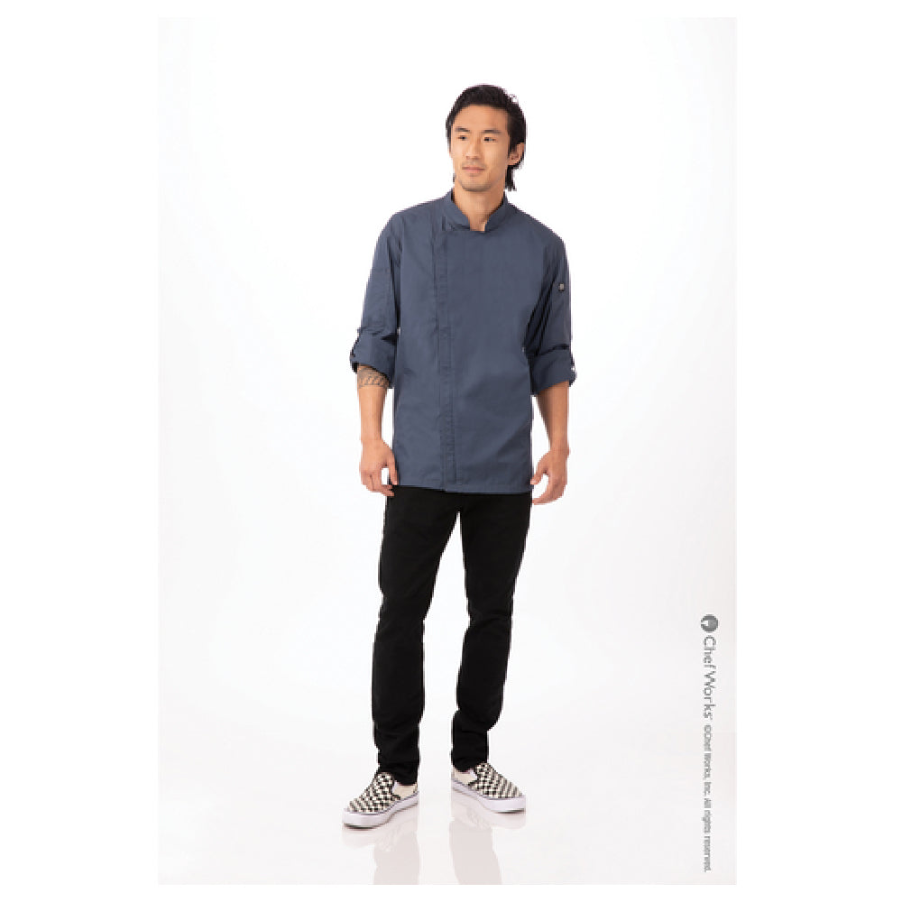 Chef Works BCLZ008-BLU-5XL Men's Hartford Chef Coat Roll-up Long Sleeves With Button Tab