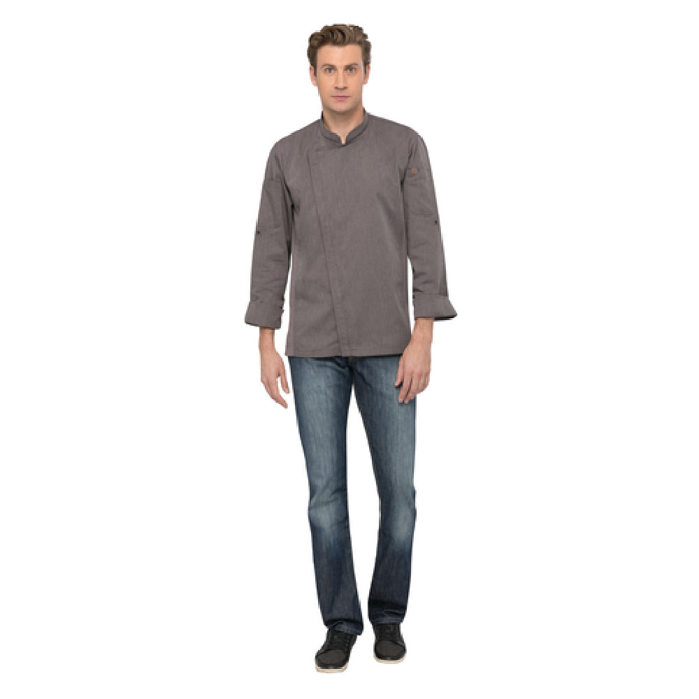 Chef Works BCLZ008-GPG-L Hartford Chef Coat Single-breasted Roll-up Long Sleeves With Tab