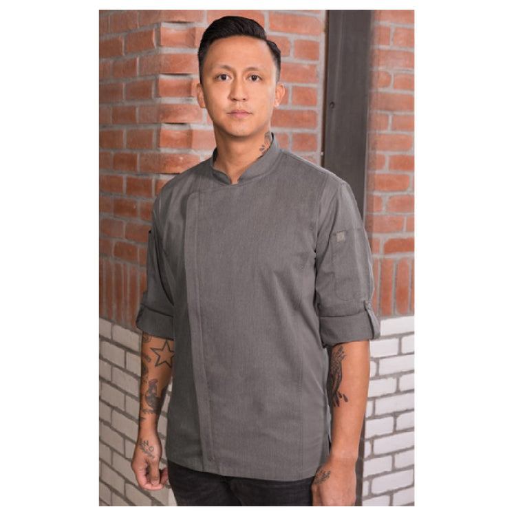 Chef Works BCLZ008-GRY-5XL Hartford Chef Coat Single-breasted Roll-up Long Sleeves With Tab