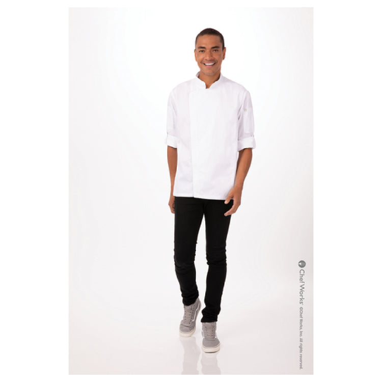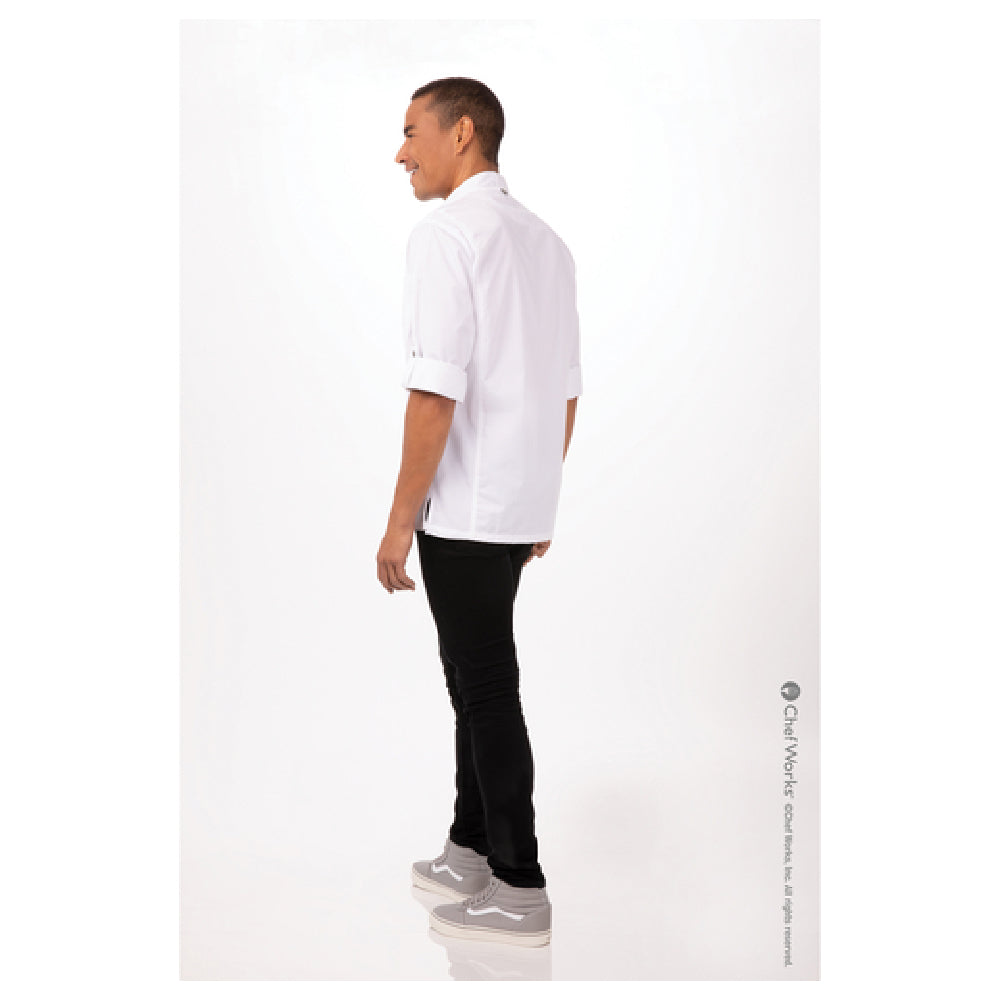 Chef Works BCLZ008-WHT-6XL Men's Hartford Chef Coat Roll-up Long Sleeves With Button Tab
