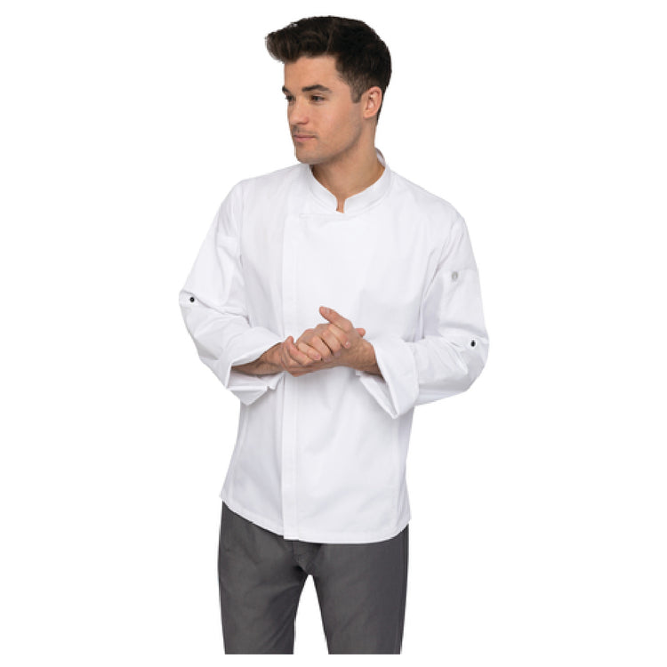 Chef Works BCLZ008-WHT-M Hartford Chef Coat Single-breasted Roll-up Long Sleeves With Tab