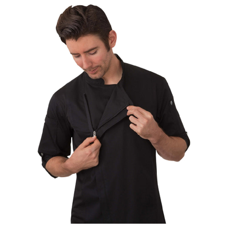 Chef Works BCLZ008BLK3XL Hartford Chef Coat Single-breasted Roll-up Long Sleeves With Tab