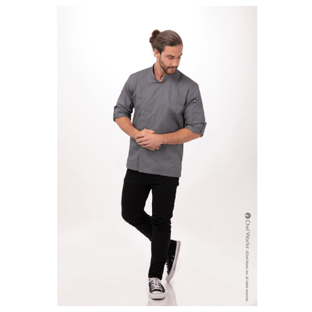 Chef Works BCMC010-GRY-5XL Men's Lansing Chef Coat Roll-up Long Sleeves With Tab