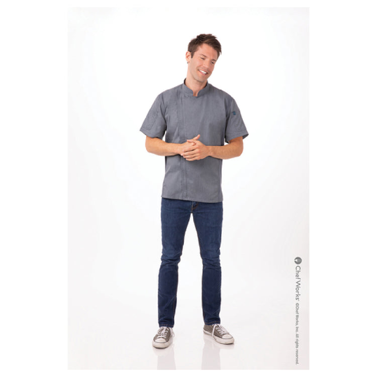 Chef Works BCSZ009-INB-4XL Men's Springfield Chef Coat Short Sleeves Left Sleeve Thermometer Pocket & Right Sleeve Cell Phone/notebook Pocket