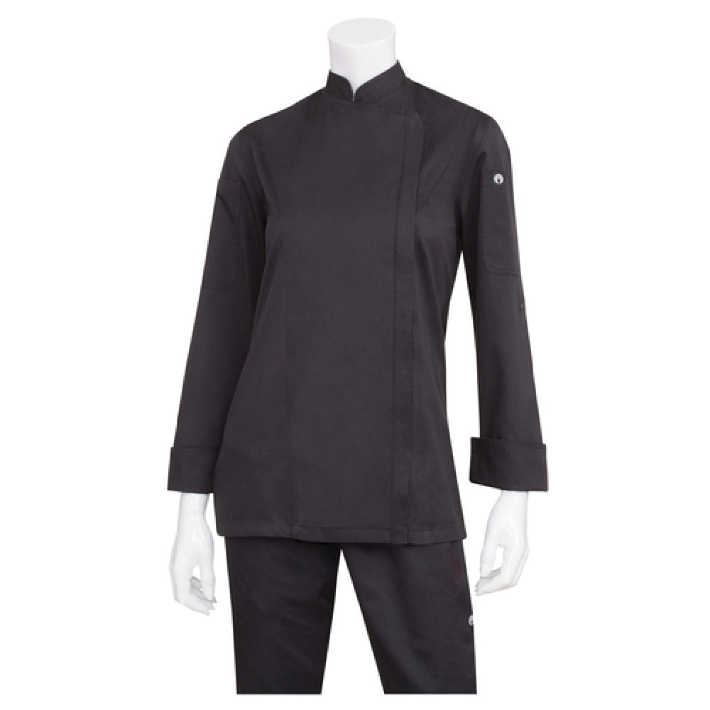 Chef Works BCWLZ005-BLK-XS Women's Hartford Chef Coat Single-breasted Roll-up Long Sleeves With Tab