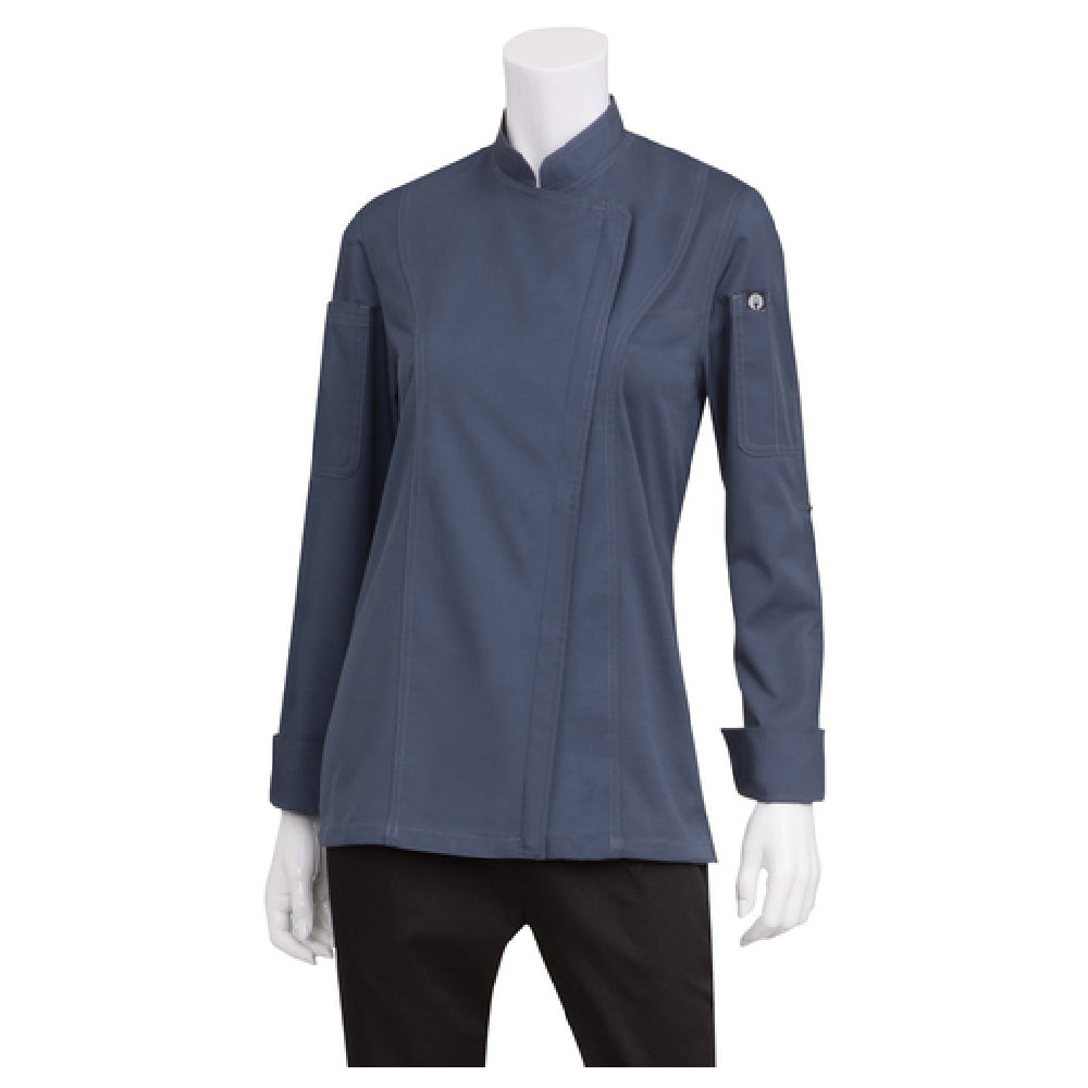 Chef Works BCWLZ005-BLU-XL Women's Hartford Chef Coat Single-breasted Roll-up Long Sleeves With Tab