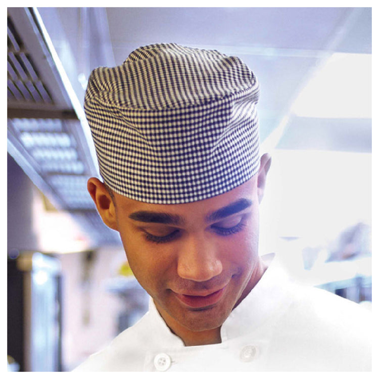 The Chef Works BNSC-SCH-0 Beanie is a versatile and practical headwear solution designed for culinary professionals who value both comfort and functionality. Featuring an expandable elastic back, this beanie provides a secure and adjustable fit, accommodating a range of head sizes with its "one size fits most" design. Constructed from a durable 65/35 poly-cotton blend, it combines the softness and breathability of cotton with the strength and resilience of polyester. This fabric composition ensures the beanie maintains its shape and appearance even after repeated use and washing. The small black/white check pattern adds a classic touch, making it suitable for a variety of kitchen environments, whether in a bustling restaurant, a cozy café, or a catering setting. The Chef Works BNSC-SCH-0 Beanie not only enhances the professional appearance of culinary staff but also offers practical benefits, such as hair containment and sweat absorption, contributing to a hygienic and comfortable working environment. Its thoughtful design and high-quality materials make it an essential accessory for chefs, line cooks, and kitchen teams looking to maintain a polished and professional look while focusing on their culinary creations.