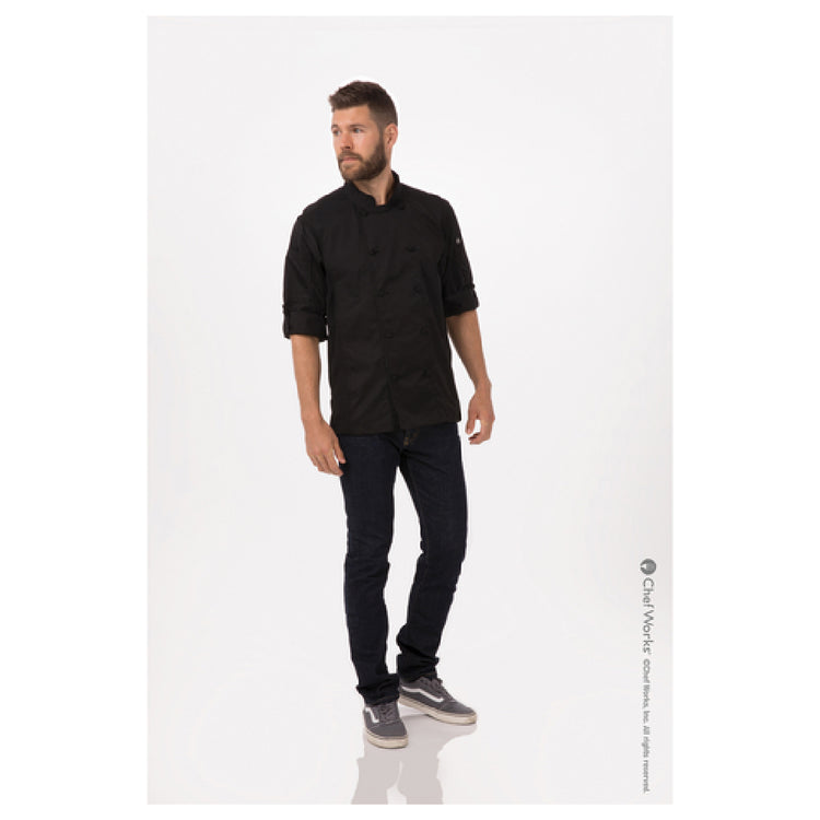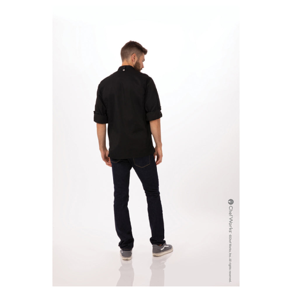 Chef Works CBC01-BLK-XS Men's Bowden Chef Coat Roll-up Long Sleeves With Button Tab
