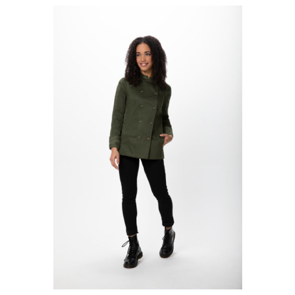 Chef Works CBN01W-OLI-XS Women's Mojave Chef Coat Double Breasted Long Sleeves