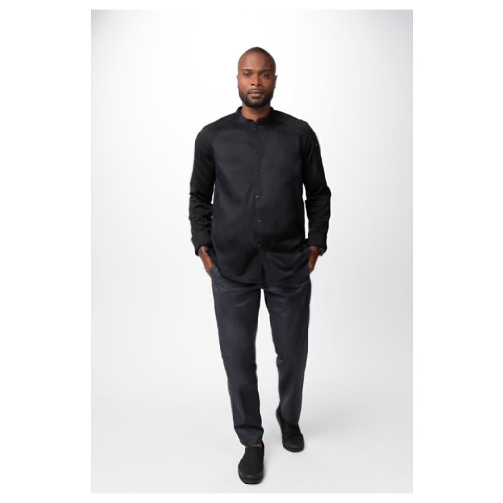 Chef Works CBS01-BLK-L Tulum Chef Coat Raglan Long Sleeve Snap Front Closure
