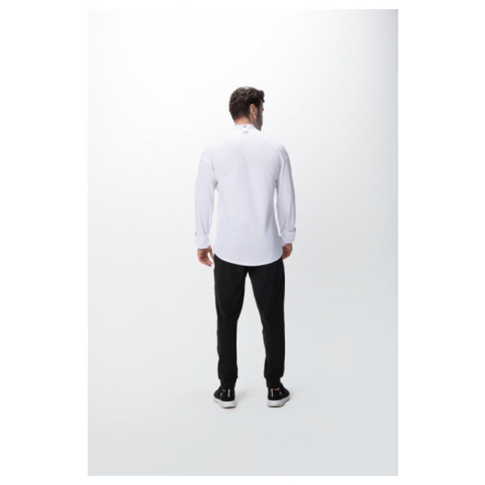 The Chef Works CBS01-WHT-M Tulum Chef Coat is a meticulously designed garment tailored for culinary professionals who demand both functionality and style. This chef coat features raglan long sleeves that provide enhanced mobility and comfort throughout the workday. It is equipped with a snap front closure, ensuring a secure fit and easy wear. A left sleeve thermometer pocket is incorporated to keep essential tools within easy reach, enhancing convenience in a fast-paced kitchen environment. The coat's side slits contribute to improved airflow and comfort, while the back collar apron tab provides a practical solution for apron attachment, maintaining a tidy and professional appearance. Constructed from a blend of 62% polyester and 38% cotton, the coat promises durability and comfort. Additionally, it includes a 100% recycled polyester knit mesh that matches the coat's color, underscoring an environmentally conscious design. Presented in a classic white hue and available in medium size, the Chef Works CBS01-WHT-M Tulum Chef Coat is an ideal choice for chefs and culinary staff seeking a high-performance and eco-friendly uniform. Its thoughtful design and technical features make it suitable for various culinary environments, from high-end restaurants to bustling catering events.