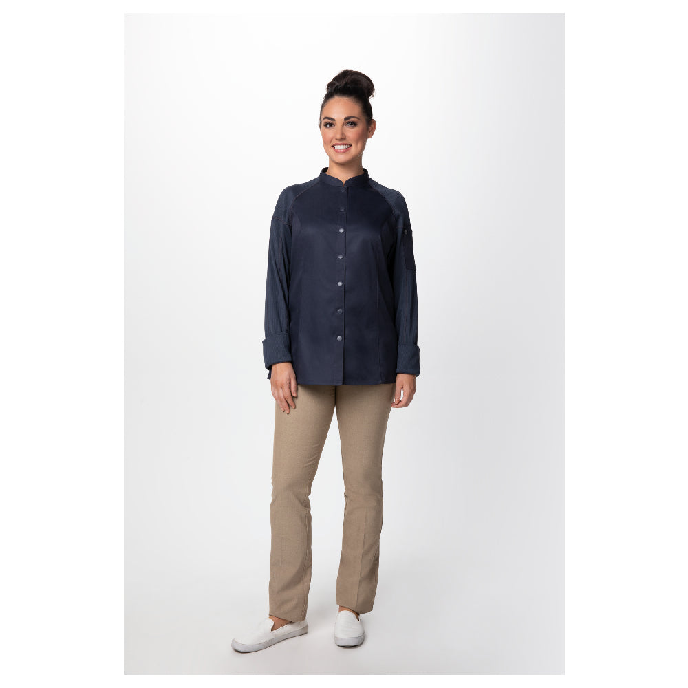 Chef Works CBS01W-GRY-L Women's Tulum Chef Coat Raglan Long Sleeve Snap Front Closure
