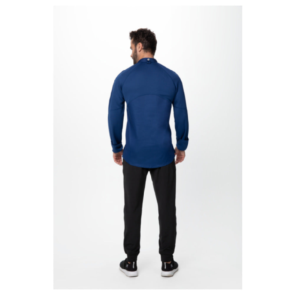 The Chef Works CBZ02-OCB-S Nepal Chef Coat is a meticulously designed garment that combines functionality and sustainability for culinary professionals. Crafted from a 62/38 poly-cotton blend, this chef coat ensures durability and comfort during long hours in the kitchen. Its raglan long sleeves provide a stylish yet practical design that allows for unrestricted arm movement, essential in a fast-paced culinary environment. The center zipper offers a modern twist on traditional button closures, making it convenient for quick wear and removal. Featuring side slits, this coat enhances ventilation and mobility, while the left chest and left sleeve thermometer pockets provide accessible storage for essential tools. The back collar apron tab is a thoughtful addition, allowing for secure apron attachment. Notably, the coat includes 100% recycled polyester knit mesh in a color-matching ocean blue, highlighting its eco-friendly construction. This sustainable fabric choice not only supports environmental responsibility but also offers breathability and moisture management. Ideal for chefs who value both style and practicality, the Chef Works CBZ02-OCB-S Nepal Chef Coat is a versatile addition to any kitchen wardrobe, suitable for a range of culinary settings from small bistros to large-scale restaurants.