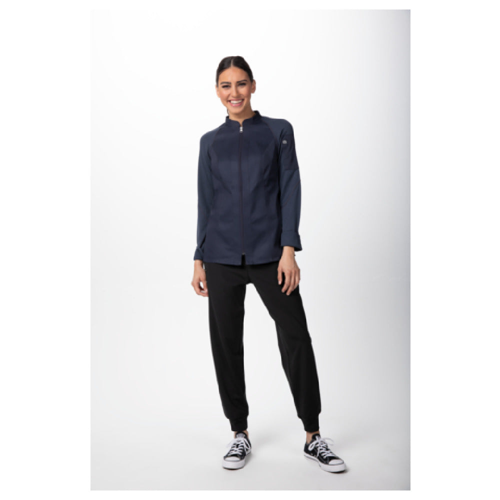 Chef Works CBZ02W-GRY-L Women's Nepal Chef Coat Raglan Long Sleeve Center Zipper